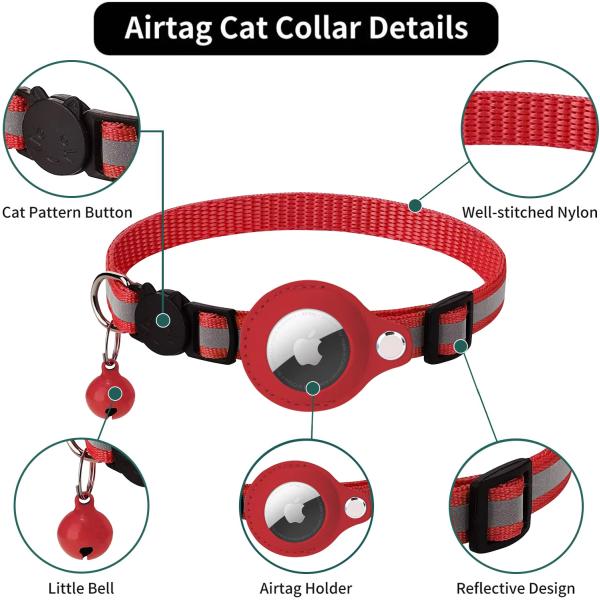 This collar measures 12.8 inches in length and is adjustable to accommodate cats of varying sizes. Its reflective design allows for clear visibility even in dimly lit areas, greatly enhancing nighttime safety. It also features an anti-strangle buckle that quickly releases if a cat accidentally stumbles, preventing harm. Its unique design is compatible with Apple Airtag for precise tracking and location, allowing owners to keep track of their cat's movements at all times. It's available in seven colors and can be customized with a logo.